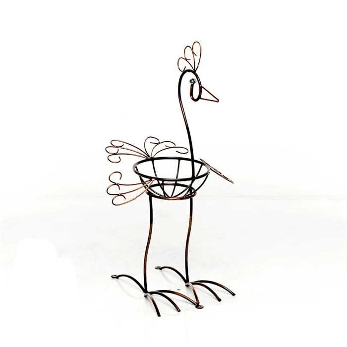 Цветочница садовая в виде птицы. В металлическое кашпо размещают цветы. Устанавливать лучше подставку на ровной поверхности для прочного удержания всей конструкции.