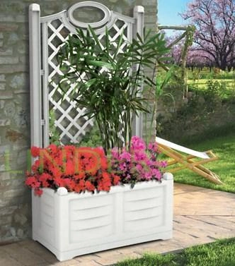 В ящик-клумбу можно посадить любимые цветы. Шпалера будет поддерживать растения и направлять их рост.Прочный и простой в сборке без использования инструментов. Тисненая поверхность создает реалистичный эффект дерева. Устойчив к резким перепадам температуры и солнечному свету. Также данную конструкцию можно использовать с целью зонирования пространства на загородном участке или летнем кафе