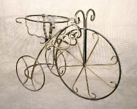 Подставка для цветов 53-007 выполнена в форме изящного, старомодного велосипеда. Вся конструкция выполнена из кованного металла окрашеннго в цвет чёрного золота.