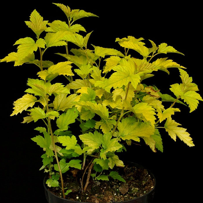 До 2,5 м, листья овальные, желтые, цветки белые или розоватые, цветет в июне-июле. Хорошая переносимость засушливого и холодного периодов. сопротивление капризам погоды, отличное здоровье, зимовка без укрытия. Калинолистный подвид для раскрытия всех своих декоративных качеств требует посадки на открытой и освещенной солнцем местности. В полутенистых и сильно затененных зонах кустарник также будет расти, однако его листва приобретет классический зеленый тон. Если это не принципиально, можно сажать и в затенении. Состав почвы должен быть таким, чтобы растение чувствовало себя комфортно и ни в чем не нуждалось.