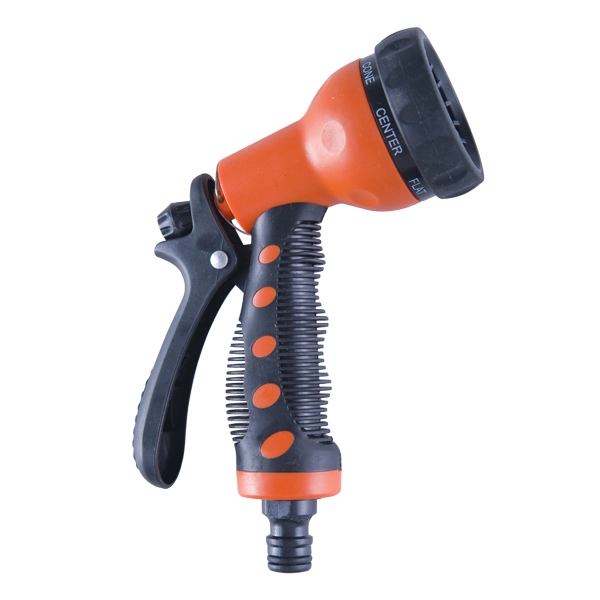 Функциональная модель пистолет-распылитель имеет 8 режимов полива. Регулировка напора воды. Возможность непрерывной работы -фиксация режима работы. Материал: пластик, металл.