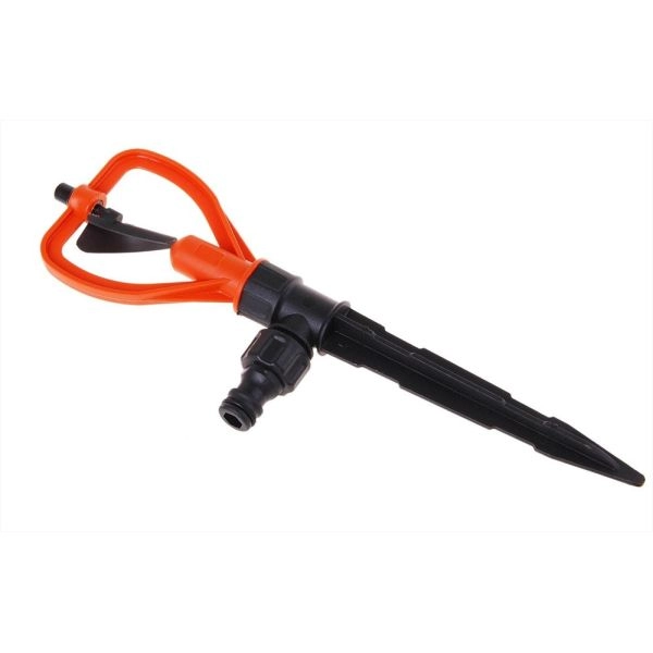 Применяется для полива газона и огорода, подходит при слабом напоре воды на приусадебном участке (от 1 атм.) . Радиус полива зависит от напора воды в системе и высоты установки распылителя. Средний радиус распыла при 0,5 атм-0,5 м, при 3 атм- 3-5 м.