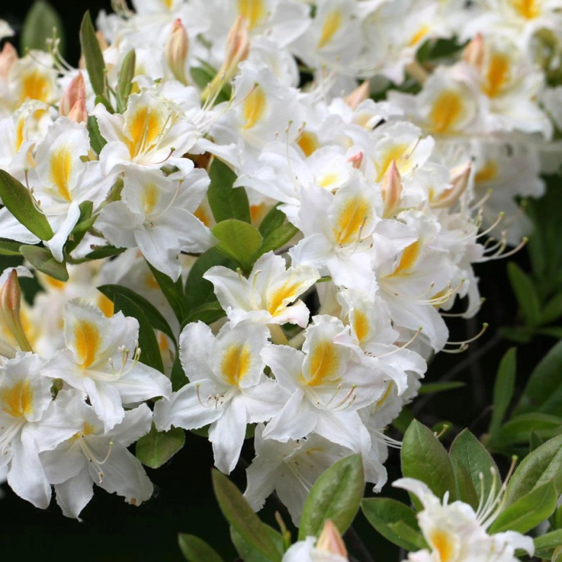 Рододендрон гибридный (азалия) 'Шнееголд' (белый с желтой серединой)