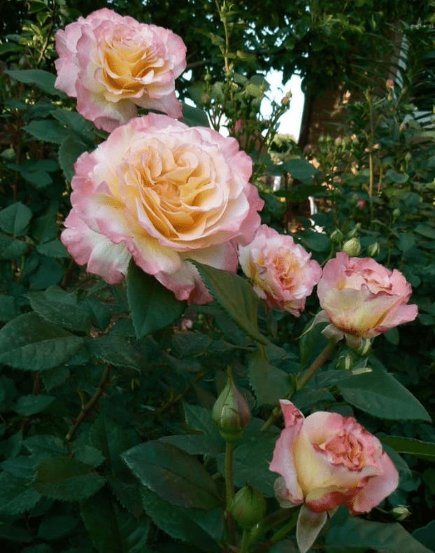 Чайно-гибридная. Высота саженца от 70 до 120 см. Цветки розы Акварель пионовидные, правильной округлой формы. Окраска кремовая,цветение повторное: июнь – июль и август – сентябрь.