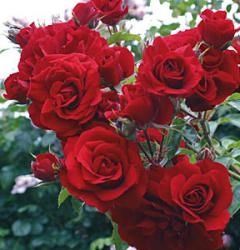 | Цветок | Цветки крупные, чашевидные, сияющее-красные, махровые. Они распускаются из округлых, темно-красных бутонов в соцветиях по 5-7 шт., обладают легким ароматом шиповника, отлично переносят дождь и жару. |