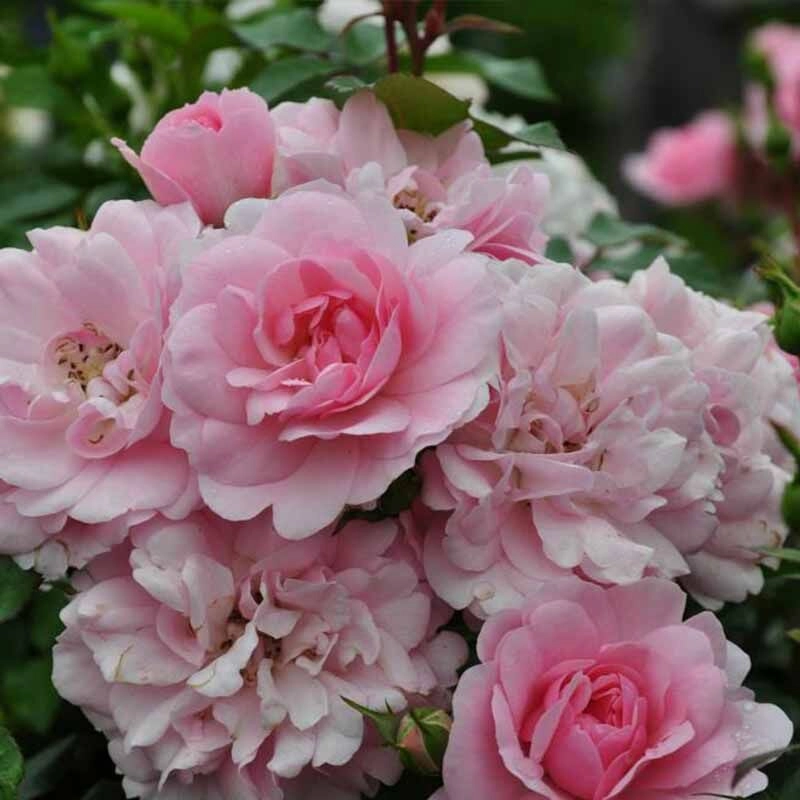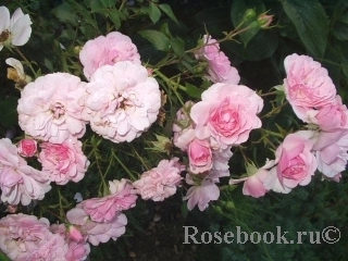 | Цветок | Цветки розовые, махровые с мягким ароматом, среднего размера 6-8 см. собраны в соцветия по 5-10 штук. |