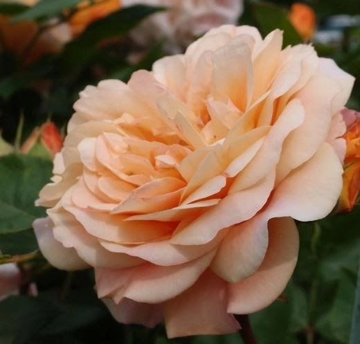 Прямостоячий куст, требователен к формировке до 150 - 180см в высоту и до 100 в ширину.. Цветки крупные до 10 - 12см. Персикового цвета, густомахровые. Аромат слабый фруктовый.