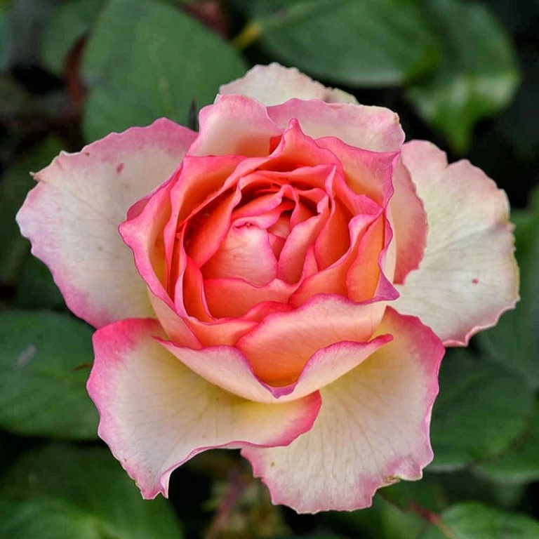 Группа: чайно-гибридные. Окраска цветка: зеленовато-кремовый с темно-розово-абрикосовым зубчатым краем лепестков. Окраска бутона: зеленовато-кремовый. Размер цветка: крупный. Тип цветка: махровый. Интенсивность аромата: слабый. Высота куста: 50-70см. Ширина куста,50 см. Местоположение: солнце. Устойчивость к болезням и вредителям: высокая, к черной пятнистости и мучнистой росе, средняя. Период цветения: . Повторноцветущая. Зона морозостойкости:, 5 (от -29° до -23°), 6 (от -23° до -18°).