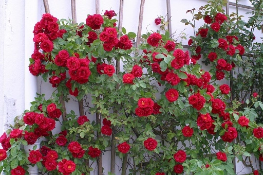 Цветы красного цвета с сильным ароматом, среднего размера 7-8 см. распускаются на концах побегов по одному или в кистях по 3-16 штук. Листья густые, ярко-зеленые, кожистые. Кусты сильнорослые, размером 200-300 см.