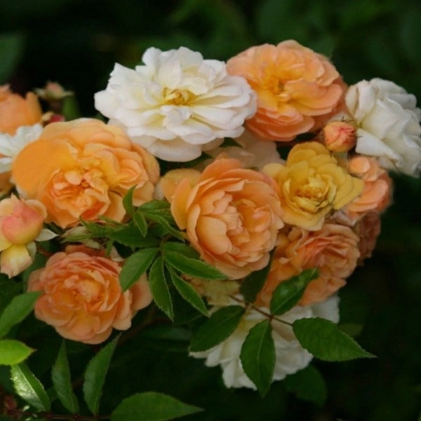 | Цветок | Бутоны жёлтые шаровидные. Цветки диаметром 4 см, махровые, жёлто-абрикосовые с розовыми оттенками, в соцветиях по 5-10, на тонких гибких цветоносах. Аромат приятный. |