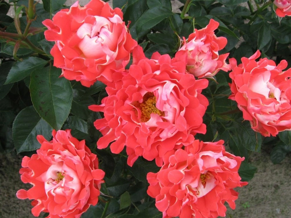 - Роза 'Кэнди Раффлс' (флорибунда) (коралово - розовая)
