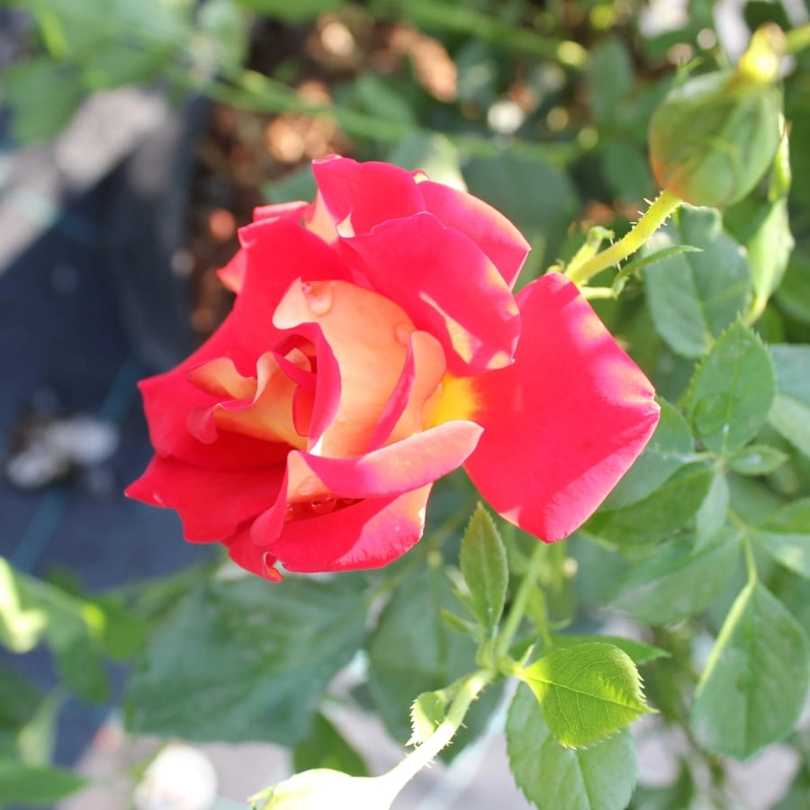 Роза 'Кетчап энд Мастед' (чайно-гибридная) (красная с желтым)