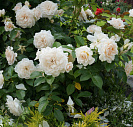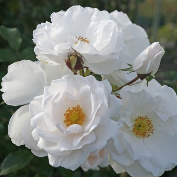Цветки полумахровые, чисто-белые с золотисто-жёлтыми тычинками. Кусты очень мощные, обильно цветущие, по 5-10 шт., на цветоносе. Цветки с самого начала цветения и до конца сезона сохраняют и форму, и окрас, и аромат.