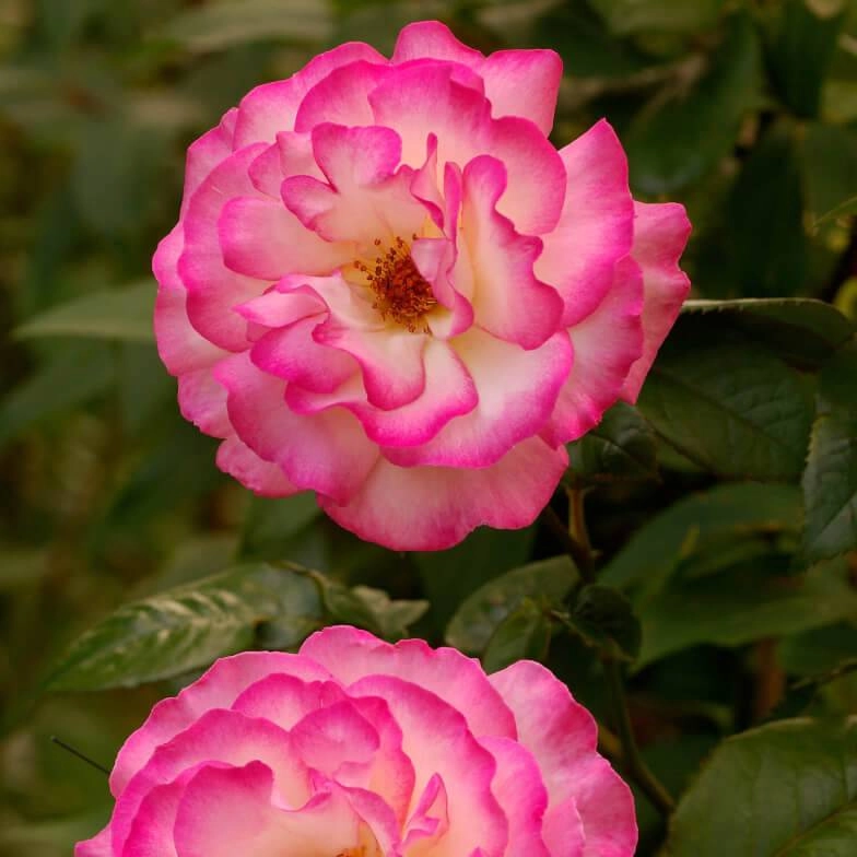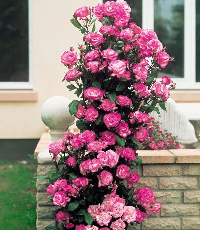 Роза Хендель плетистая - обильно цветущая, очень устойчивая роза. Цветки кремово-белые с желтым центром, с красновато-розовой полосой по краю каждого цветка. По мере старения цветка полоса расширяется, и лепестки иногда становятся целиком розовыми, особенно в жару. На кусте одновременно присутствуют все стадии роспуска. Листва темная, куст раскидистый.