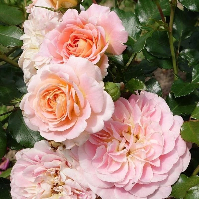Высота 60-100 см.Цветки абрикосового цвета с розово охристым оттенком, с более светлой с желтым оттенком обратной стороной лепестков, в середине цветка бледно-желтый цвет. Цветок махровый,(26-40 лепестков), среднего размера, около 8 см, чашевидной формы, напоминают георгины, собраны в соцветия по 5 - 10 штук. с легким ароматом. Цветение обильное, в течение всего сезона.