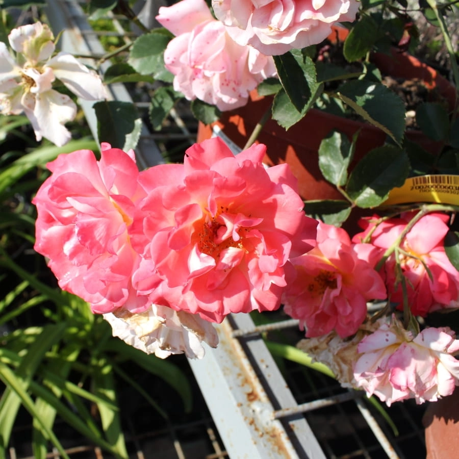| Цветок | Вначале цветки медно-абрикосовые с розоватым оттенком. Со цветок выглядит розово-абрикосовым, а в конце цветения - розово-кремовым. Махровые цветки распускаются в соцветиях по 10 цветков, из красно-розовых, округлых бутонов. |