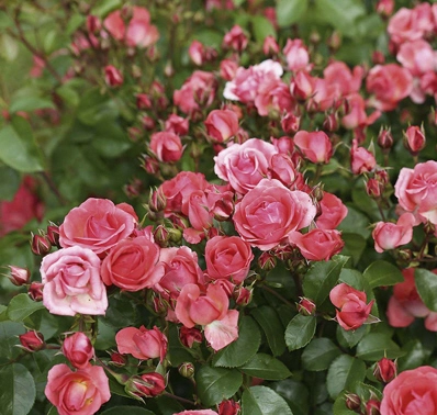 | Цветение | Цветки некрупные 4-5 см в диаметре, лососево-розовые, «светящиеся», полумахровые. Цветение обильное, в течение всего сезона. |