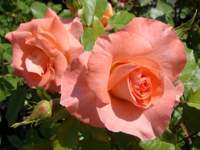 Высота куста около 70-90 см., бутон светло-лососевый, цветок ярко лососево-розовый, обратная сторона белая,диаметр до 10, средне-махровый. Аромат слабый, приятной свежести. Зацветает рано и цветет практически непрерывно. Практически не болеет, но может поражаться черной пятнистостью.