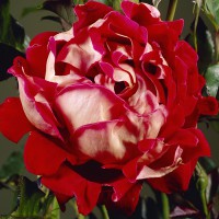Роза 'Мистик Раффлс' (флорибунда) (бело - красная)