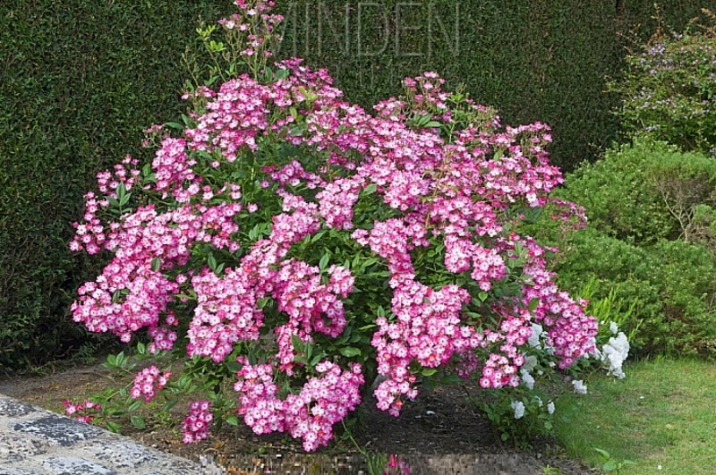Этот великолепный шраб цветет ароматными немахровыми цветками густо-розового цвета с крупным белым глазком. Цветки мелкие, появляются в небольших и очень крупных кистях. Повторное цветение обильное, особенно осенью, когда появляются огромные шапки цветов. Они долго не отцветают. Куст очень сильный, раскидистый, сорт обладает великолепной устойчивостью к болезням.