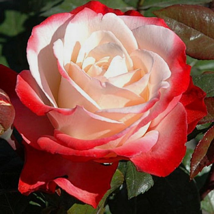 Роза 'Ностальжи' (чайно- гибридная) (бело - красная)