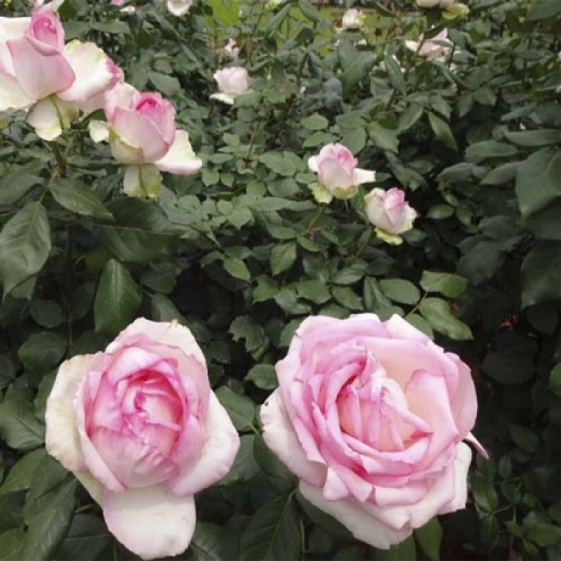 Идеальна для срезки в вазы. Цветки бело-кремовые с розово-карминной каймой, огромные, диаметром 13-14 см, густомахровые (90-100 лепестков), шаровидные. Аромат зрелого персика. Кусты прочные, прямые. высотой 90-110 см. Листва зелёная, глянцевая, средней густоты. Устойчивость к заболеваниям хорошая. Цветёт с июня до сентября. Предпочитает солнечные места с хорошим доступом воздуха. Мало подходит для районов с дождливым и холодным климатом. Награды: серебряная медаль Saverne 1992. Использование: для массивов, бордюров и срезки в вазы.
