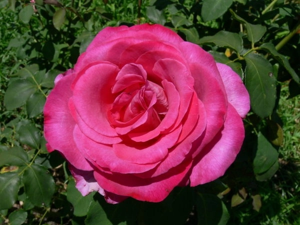 Высота 70-80 см, ширина около 50 см. Цветок густомахровый с насыщенным ароматом яркого розового цвета диаметром 14-15 см. Повторноцветущая. Высокая морозостойкость, устойчивость к болезням средняя.