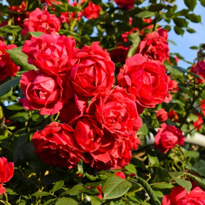Цветок: ярко-красный с малиновым оттенком, при полном распускании становится вишнево-красным, чашевидный, полумахровый, диаметр цветка 5 - 7 см, обладает легким ароматом розового масла, размер куста 220 х 200 см, Устойчивость: к заболеваниям средняя, морозостойкий сорт.