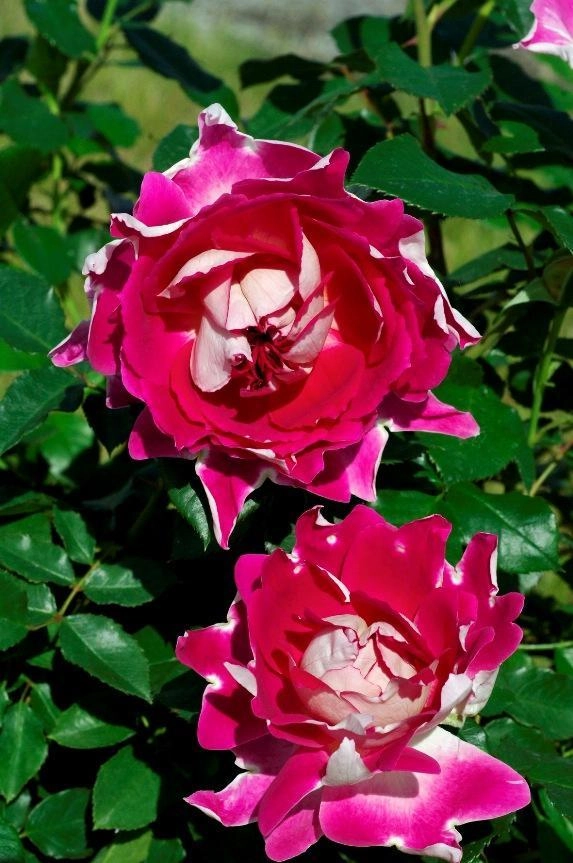 - Роза 'Раффлс Пассион' (флорибунда) (розово - белая)