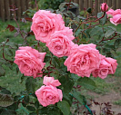 Цвет глубокий розовый, не выгорает. Диаметр – 9-12 см. Цветы густомахровые, появляются по одному или в кистях по 3-4 шт.