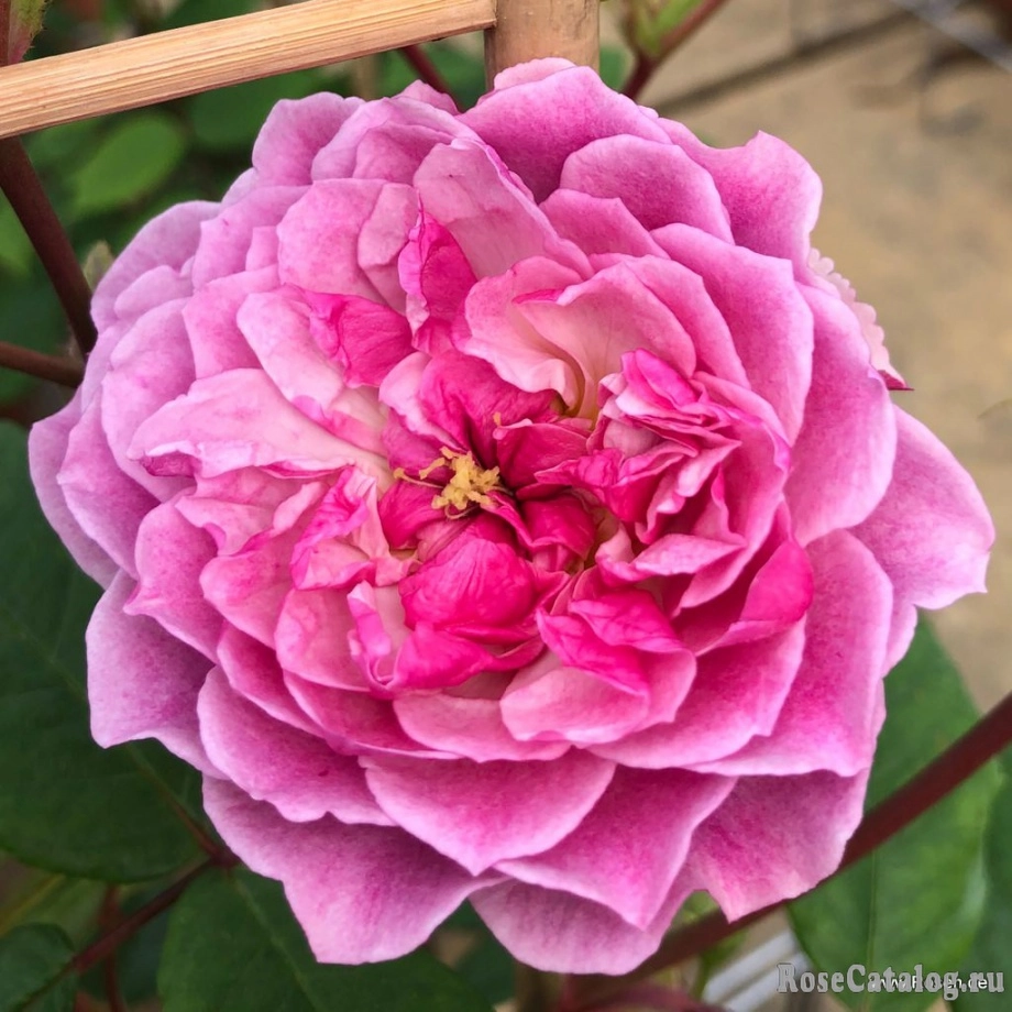 Цветки светло-розовые, сильно махровые, диаметром 4 - 5 см, с возрастом цветков насыщенность цвета меняется. Аромат приятный, средней силы.