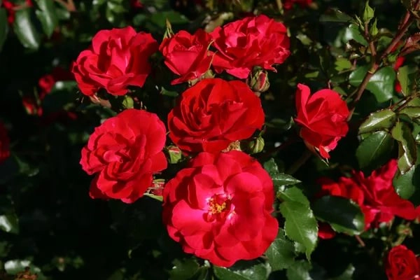 имеет карминно-красный цвет. Высота куста как правило составляет около 40-60 см. Ширина порядка 50 см., болеет в неблагоприятные годы.