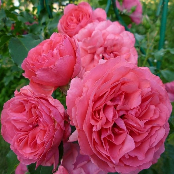Плетистые крупноцветковые розы. Высота от 150 см. Цветок насыщенно-розовый, по мере распускания становится серебристо-розовым, густомахровый, диаметр цветка 9-11 см, обладает легким ароматом. Цветение очень обильное, продолжительное до заморозков.