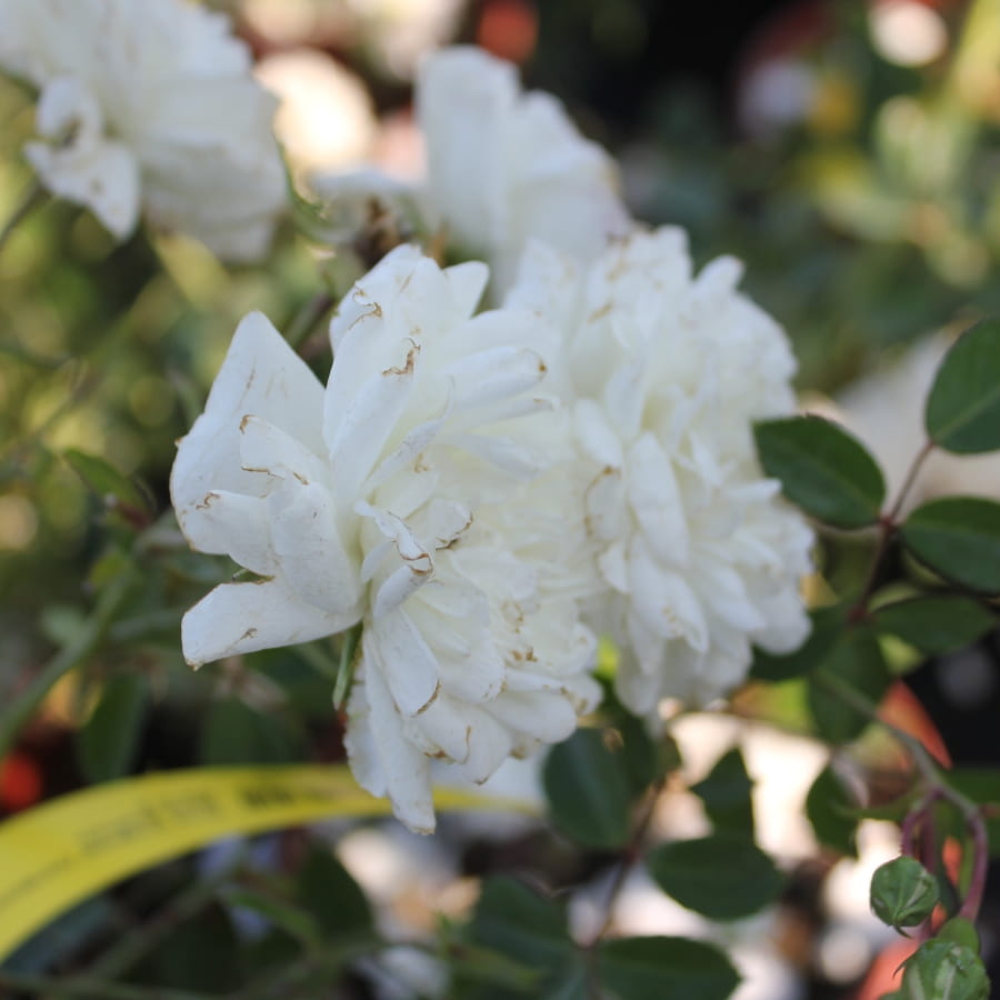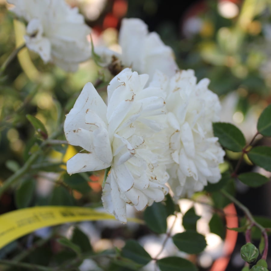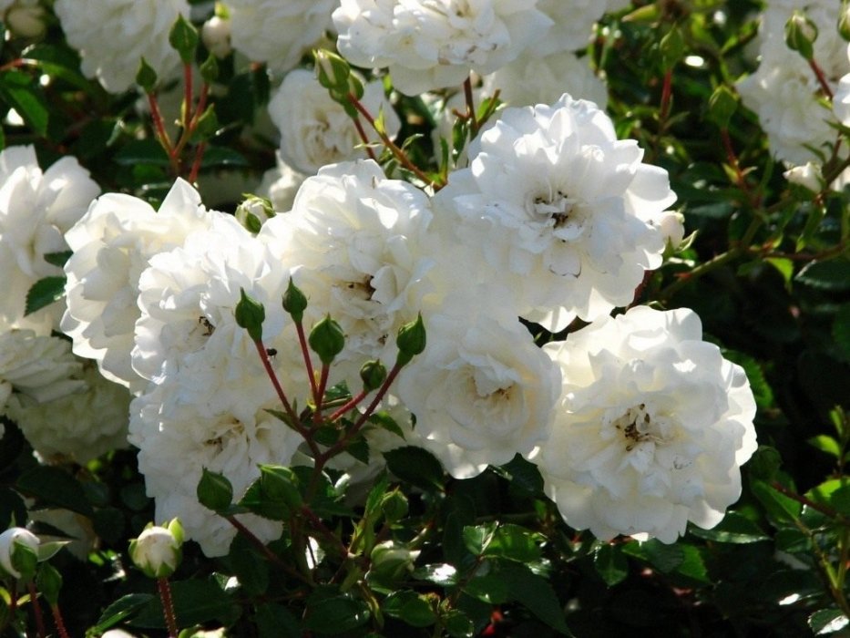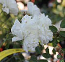 Цветки кремово-белые (сразу после роспуска с розовым оттенком), густомахровые, диаметром 4-5 см.