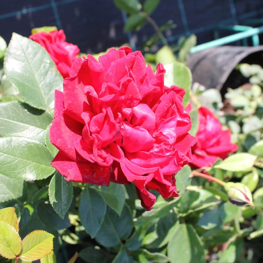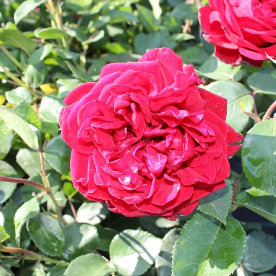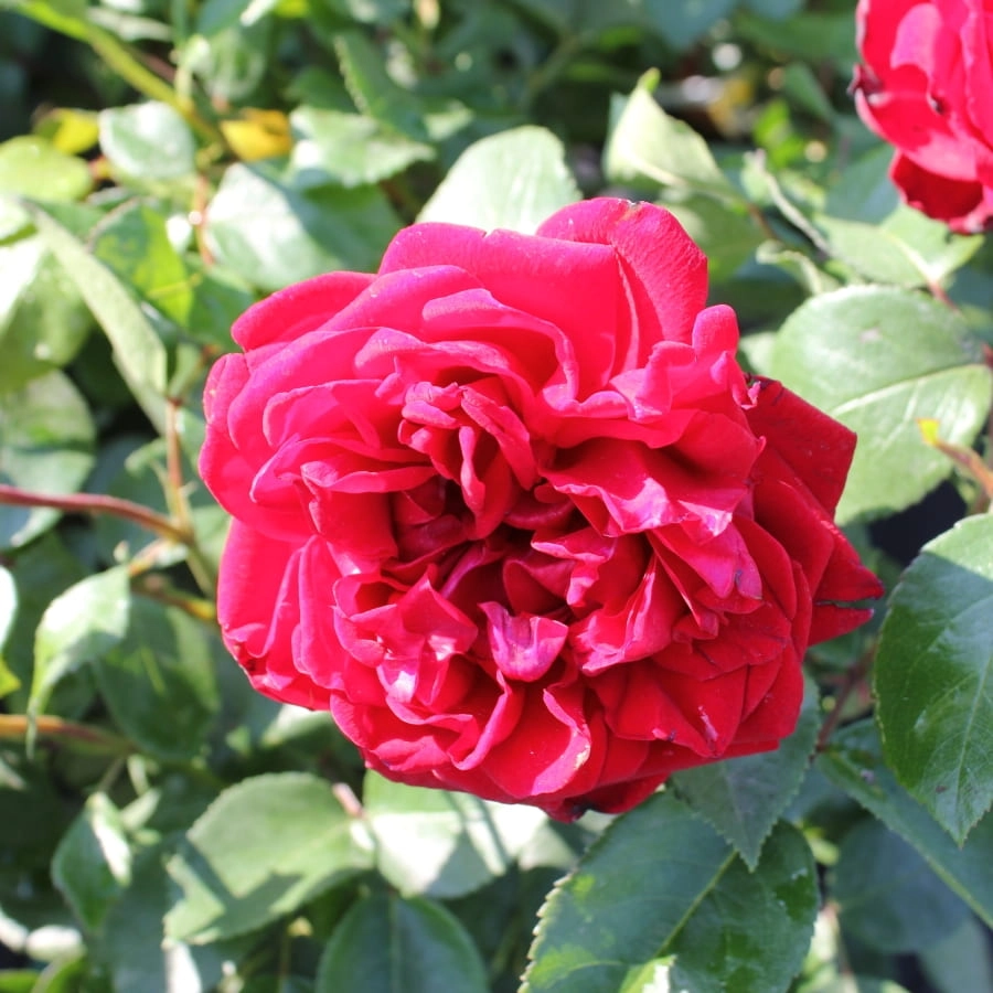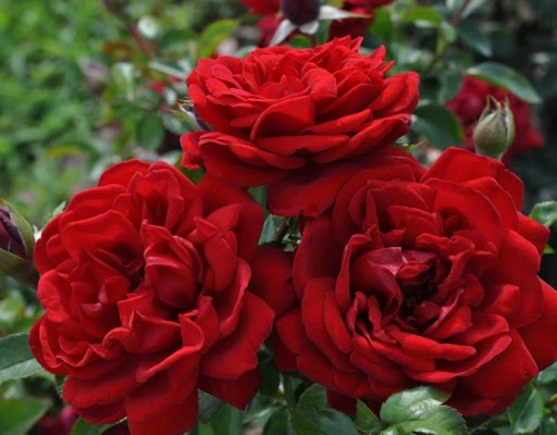 | Цветок | Роза с крупными, элегантными красными махровыми (35-40 лепестков) цветками, открывающимися из тёмно-красных бокаловидных бутонов. Цветы могут собираться в кисти, но иногда размещаются на стебле и по одному. |
