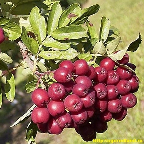 Плоды темно-рубиновые с сизым налетом, овальные слаборебристые, массой 1,3 – 1,8 г, собраны в щитки по 40–50 штук