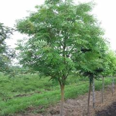 Листья темно-зеленые, крупные, непарноперистые. Листочки в листе отстоят друг от друга на 1-3 см, отчего листья и крона выглядят очень ажурными. Черешки листьев и побеги красноватые. Осенью желто-оранжевые или красные тона.