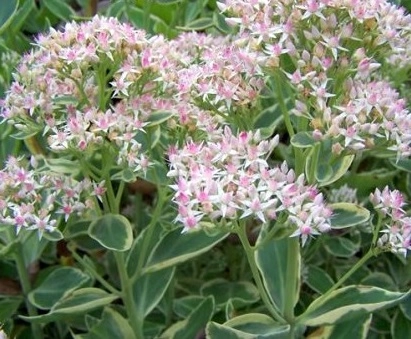 Высота многолетника до 50 см. Новый пестролистный сорт, листья серовато-зеленые, с белой каймой, цветки белые в жаркую погоду и светло-розовые в прохладное лето. Цветет в августе - сентябре.