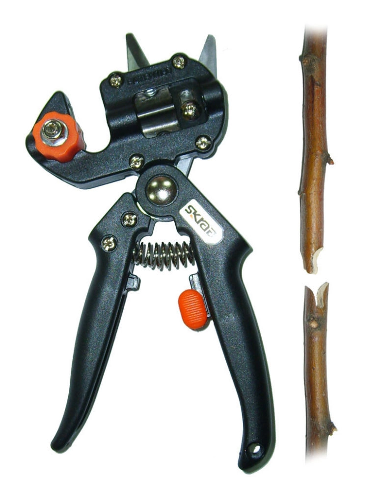 Лезвием специальной формы делаются срезы на ветках на привое и подвое. В результате срезы получаются идеального качества, привой и подвой прекрасно подходят друг к другу. Их остаётся только закрепить выбранным ранее способом (обмотать специальной или изоляционной лентой для предохранения от бактерий и неблагоприятных погодных условий).