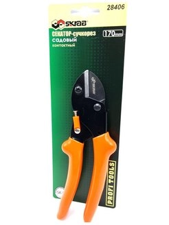 Секатор имеет специальную конструкцию позволяющую производить рез на 30 % легче чем с аналогичными инструментами. Пружинный механизм скрытого монтажа исключает его потерю и выход из строя инструмента. Лезвия выполнены из высокоуглеродистой японской стали марки SK5. Обладает высокими антикоррозийными свойствами. Обеспечивает чистый рез и долговечность заточки при работе. Ручка эргономичной формы с упором. Тефлоновое покрытие (PTFE). Режущая способность 10мм. Для профессионального использования.
