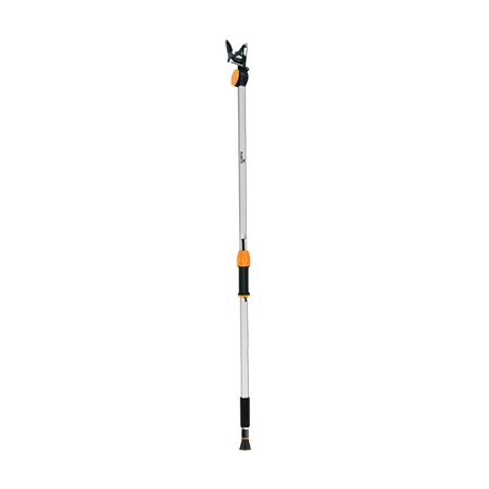 Универсальный высоторез предназначен для резки свежей древесины. Вертикальный рабочий диапазон около 4 м. Прочная конструкция штанги изготовлена из алюминия, имеет прорезиненные ручки в местах хвата. Лезвия изготовлены из углеродистой стали. Материал инструмента: сталь, полипропилен, резина.