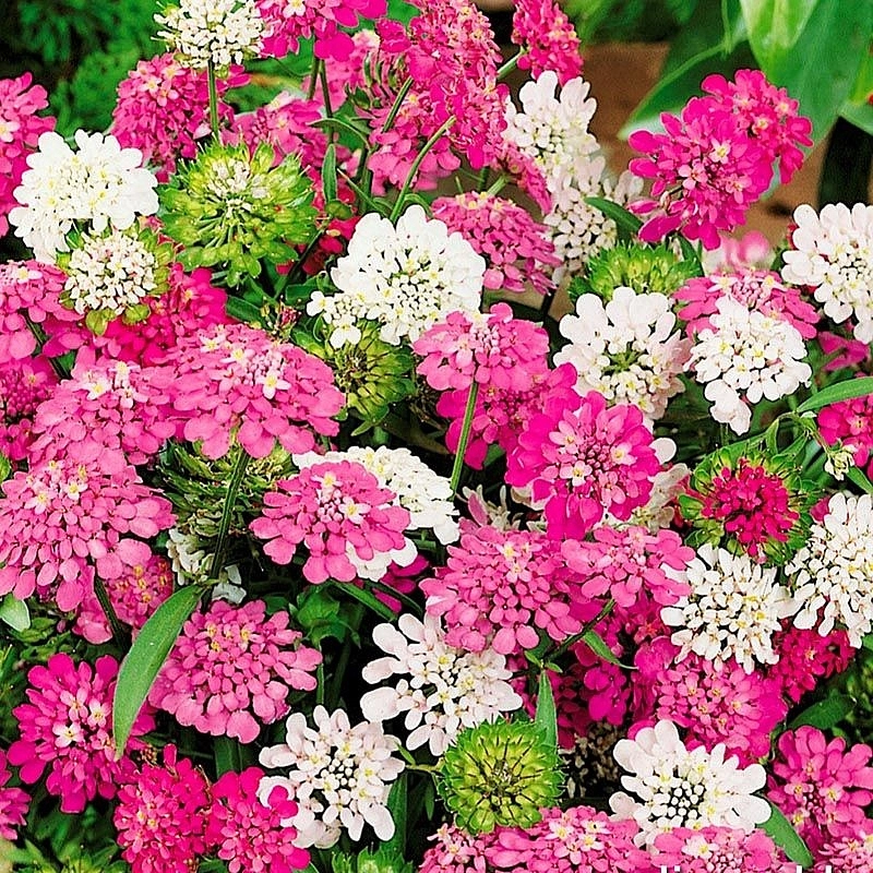 У ибериса имеется стержневая система корней, в связи с этим он крайне негативно реагирует на пересадку. В зависимости от вида побеги у данного растения могут быть прямостоячими либо стелющимися. Простые маленькие листочки, как правило, имеют темно-зеленый окрас с отливом. Соцветия имеют форму зонтика, и в их состав входят маленькие цветочки сантиметрового диаметра. Цветет иберис очень пышно, при этом часто цветков бывает настолько много, что они закрывают все листочки. Цветки могут быть окрашены в розовый, лиловый, белый, сиреневый либо красный цвет.