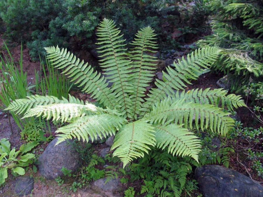 Высота до 120 см. Листья образуют правильную чашу. Листья широкие, ажурные. Местоположение: полутень, тень. Климатическая зона: 4 (-35°С).