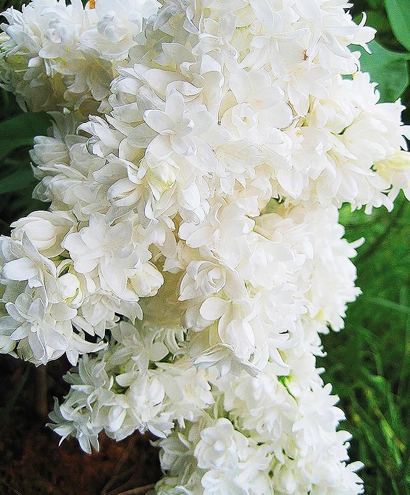 | Цветение | Цветёт обильно и продолжительно, в средние сроки. Цветки чисто-белые, крупные, диаметром 3 см, густомахровые (из 3-4-х венчиков), с нежным ароматом. Лепестки с приподнятыми краями и загнутыми кончиками. Соцветия крупные, плотные, из 2-3 пар метёлок 18 — 20 см. |