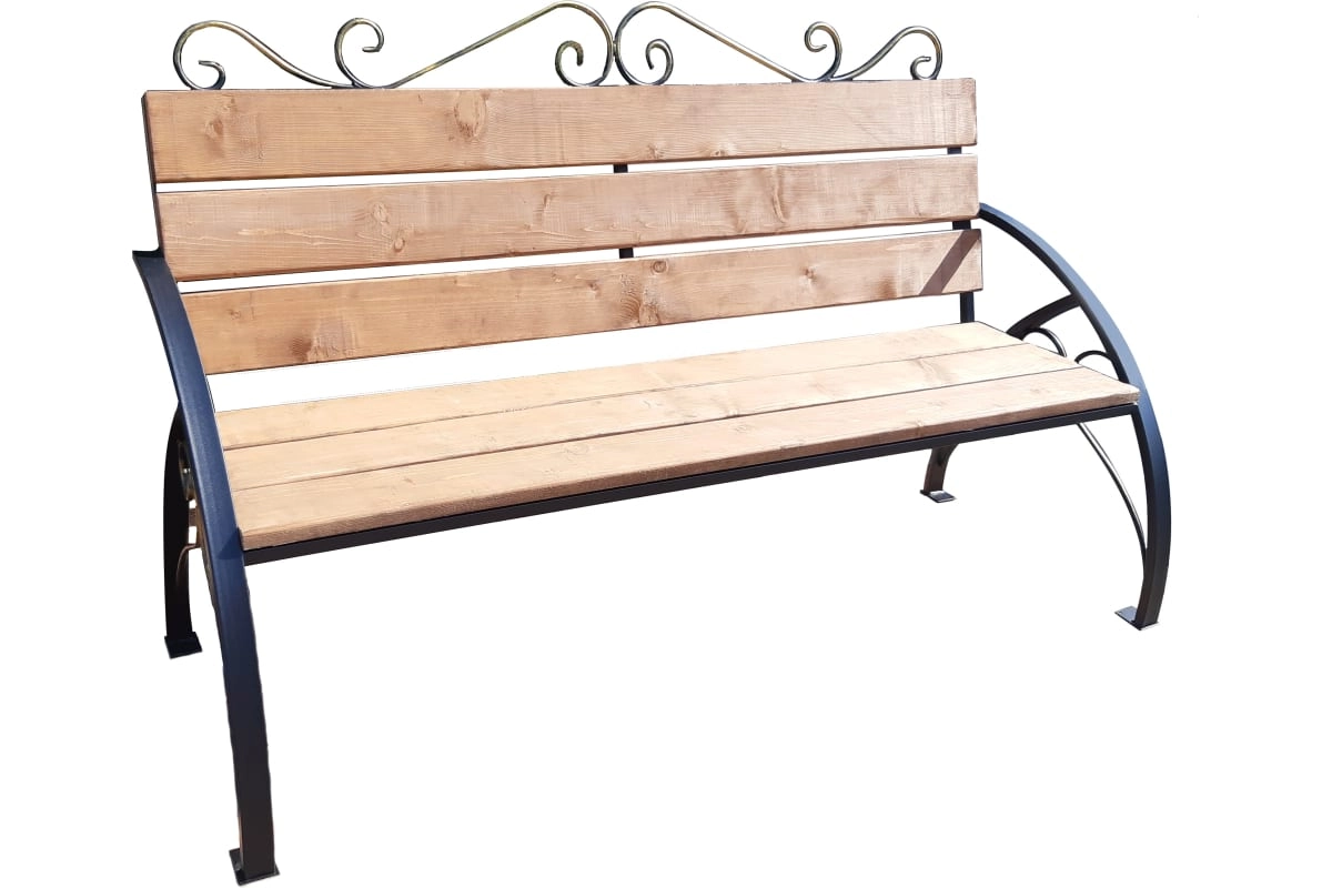 Каркас изготовлен из металлической трубы, для защиты от коррозии и придания эстетичного внешнего вида он покрыт порошковой краской.Сиденье изготовлено из натурального дерева, окрашенного лаком, что обеспечивает устойчивость к негативным воздействиям окружающей среды.