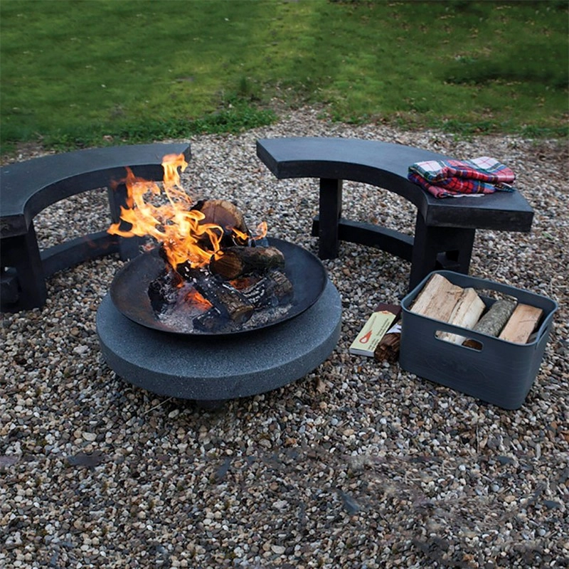 Скамья для костровой зоны Concretika SKM110. В единой стилистике с чашами и подставками производятся скамьи для костровых зон из фибробетона. Обычно вокруг костровой чаши устанавливают 3 скамьи, создавая завершенный круг.