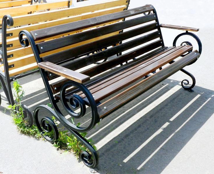 Утонченная французская скамейка сделает ваш сад уютным уголком для отдыха и общения. Каркас скамейки выполнен из прочного металла, покрытого эмалью черного цвета. Настил и спинка изготовлены из прочного дерева - брус хвойной породы. Чтобы обеспечить дополнительную надежность, скамейку покрывают светлой или темной морилкой, а затем наносят яхтный лак. Это обеспечивает ей дополнительную прочность.