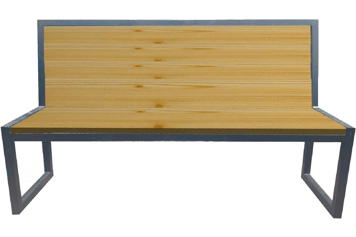 Каркас изготовлен из металлической трубы, для защиты от коррозии и придания эстетичного внешнего вида он покрыт порошковой краской.Сиденье изготовлено из натурального дерева, окрашенного лаком, что обеспечивает устойчивость к негативным воздействиям окружающей среды.