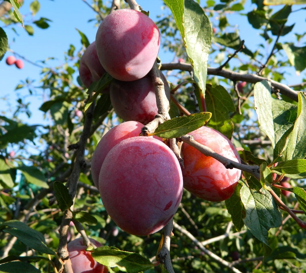 Раннего срока созревания. Дерево среднерослое, 2,5 м высоты. Вступает в плодоношение рано, на 2 - 3 год после посадки в сад. Плод крупный, 30 г, округлой формы, красный. Цветение очень раннее, опыляется только сортами сливы китайской (Красный шар, Аленушка и др.)