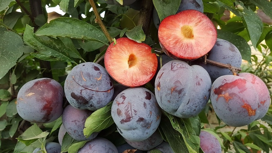 Дерево тонкое, изящное, раскидистое, крона пирамидальная, средней густоты.Плодоношение на 3-4 год после посадки. Плод, форма круглая, с выраженным швом. Кожица бордовая, по мере созревания темнеет, становясь сине-фиолетовой. Мякоть среднеплотная, светящаяся, желто-оранжевого цвета, к кожице она розово-красная. Сочность – умеренная, кисло-сладкий вкус.Срок созревания ранний. конец июля — начало августа.Самоплодный.